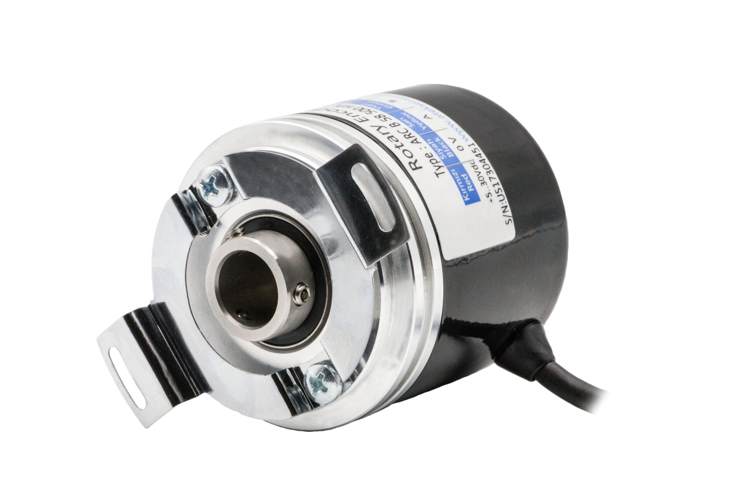 Incremental measurement with optical principle 50 mm body diameter 6, 8 or 10 mm shaft options Resolution options from 60 to 20000 pulses Durable up to 6000 RPM IP54 protection class